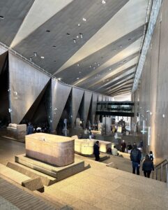 After lunch, we went to the Grand Egyptian Museum, completed last November at a cost of $2 billion. Marco said we could spend two months there, but he was going to show us what he thought were the most important exhibits in a half-day sprint. Our tour focused on King Tut’s tomb and the more than 5,000 artifacts recovered from it, including miniature guards and lunchboxes. We also saw the priceless King Tut mask. It is a truly spectacular museum. Egypt is rich in history.